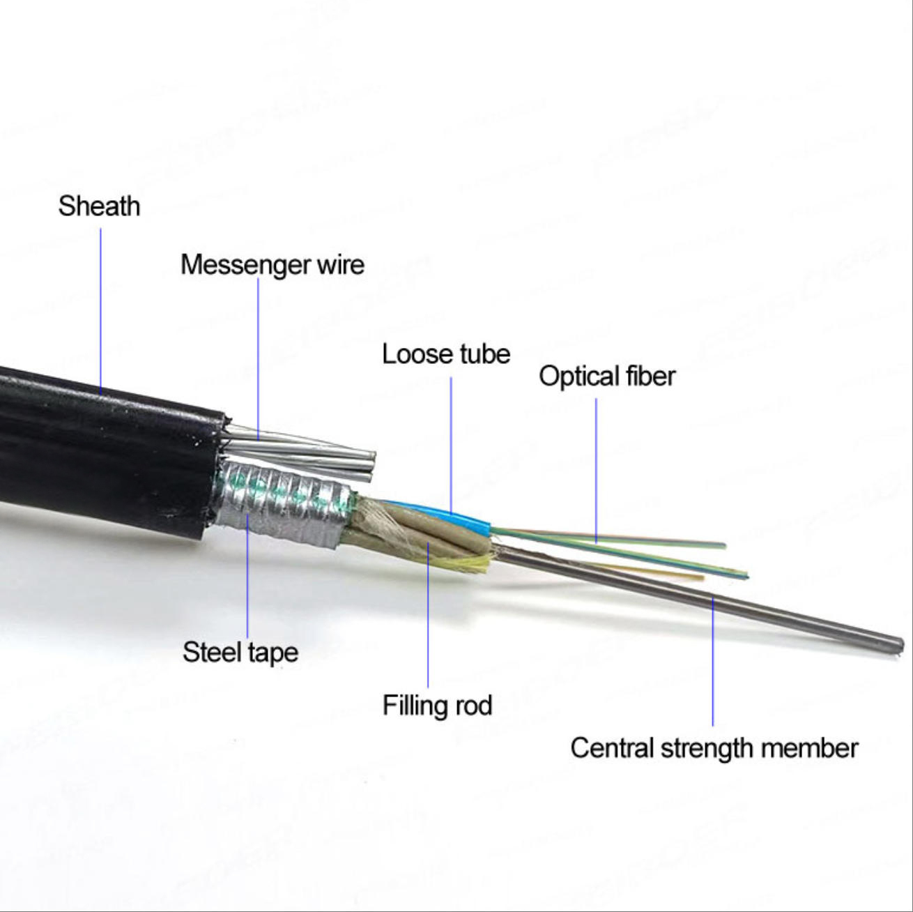 Das Glasfaserkabel GYTC8S ist ein typisches selbsttragbares Glasfaserkabel für den Außenbereich.Das Mental-Strength-Member besteht aus Stranged-Wire, da der Stützteil mit einer PE-Hülle ergänzt wird, um Figure 8-Strukturen zu sein.- Stahlband mit Panzerung und PE-Außenhülle, die Zerkleinernsfestigkeit bietet.